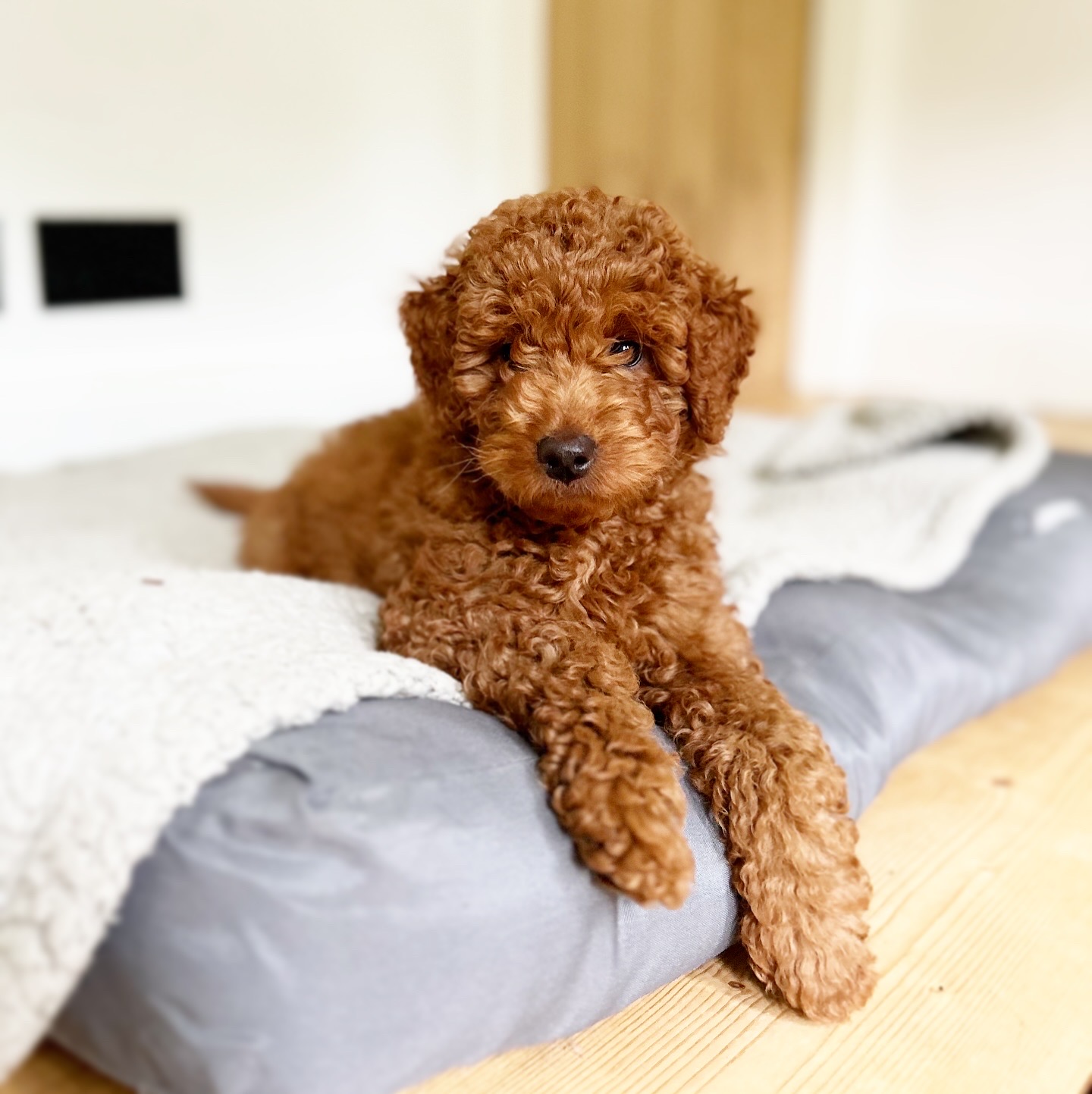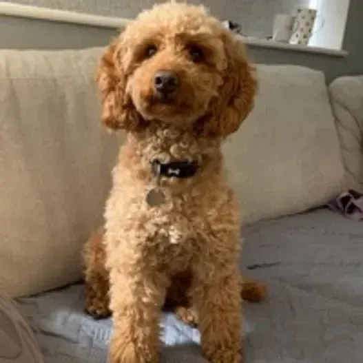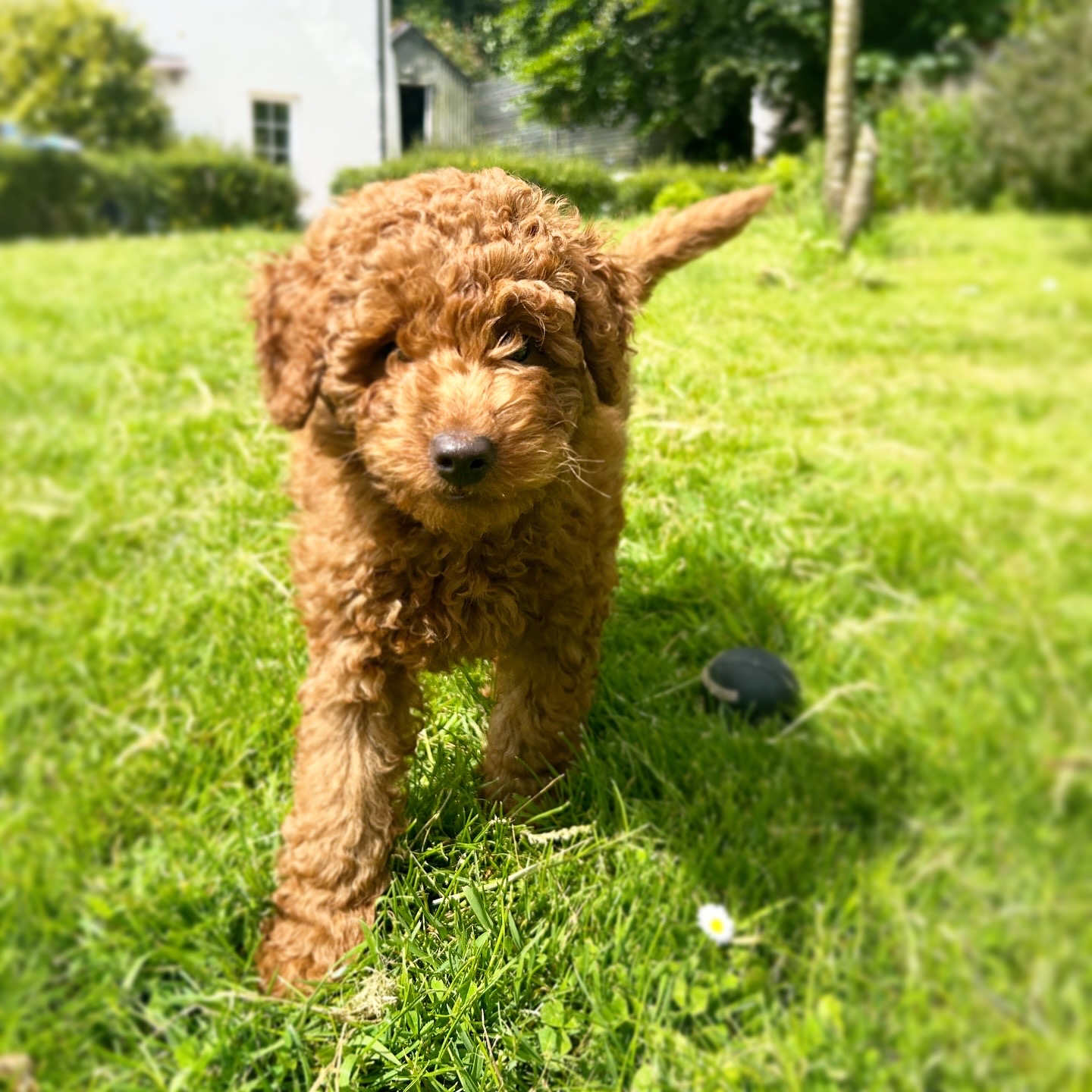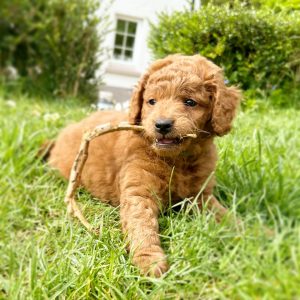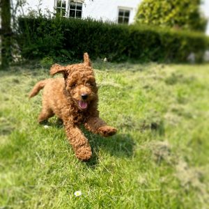 Lucky is our beautiful red Cockapoo which we bread ourselves.  She has a beautiful, soft curly coat which is non shedding. Lucky is very loving, playful and energetic.