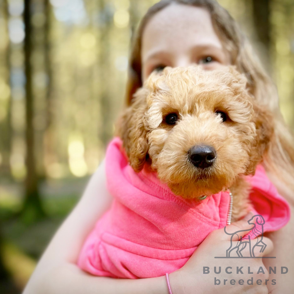Lucky is our beautiful red Cockapoo which we bread ourselves. She has a beautiful, soft curly coat which is non shedding. Lucky is very loving, playful and energetic.