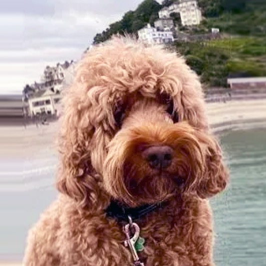 Ziggy is our beautiful red F1 Cockapoo and we’ve had her since she was 8 weeks old.  She’s fairly small in size and has a beautiful, soft curly coat which is non shedding.  Ziggy is very loving, playful and energetic.